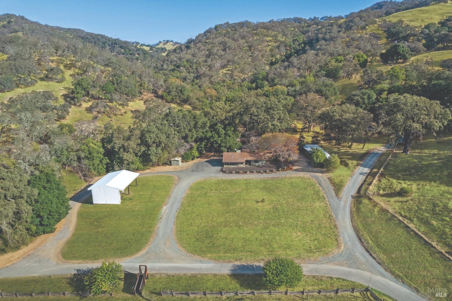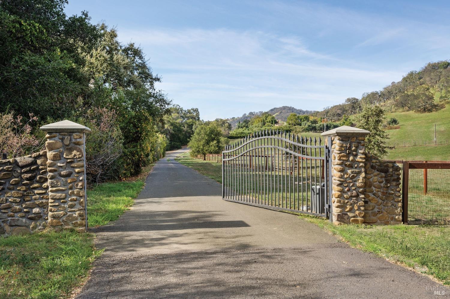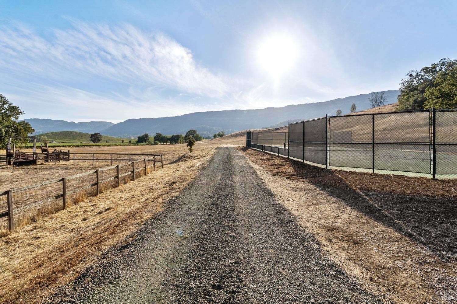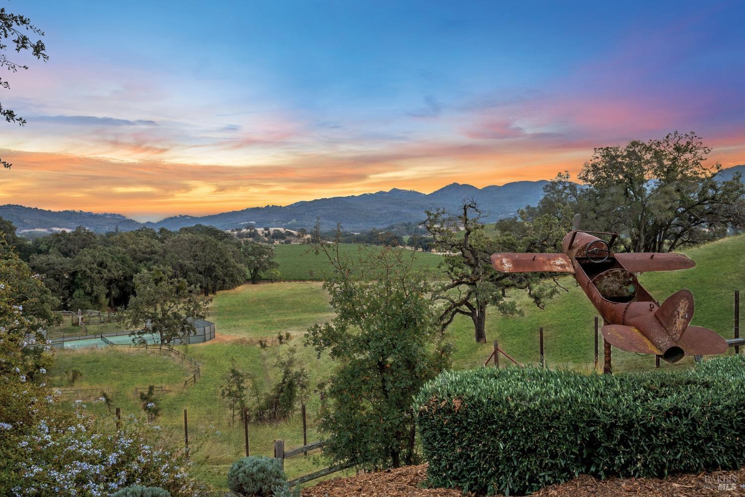 This 62 acre property has room for vineyards, horses, and livestock and offers a Napa lifestyle like no other. A lovely road takes you past your own ranch house, horse facilities, pickleball court and more on the way up a gentle hill to a rustic and yet elegant home with fine finishes and spectacular to-the-horizon southern panoramic views. The grounds surrounding the home were designed by award winning landscape architect, Steve Arns. Days would be spent on the patio or private balcony with a cup of coffee or glass of wine, looking at the lush green land below. The perfect place to gather with family or friends with 4 bedrooms in the main house on the hill and 3 bedrooms in the ranch house. A weekend escape for lots of outdoor fun, convenient to the Bay and the town of Napa.
