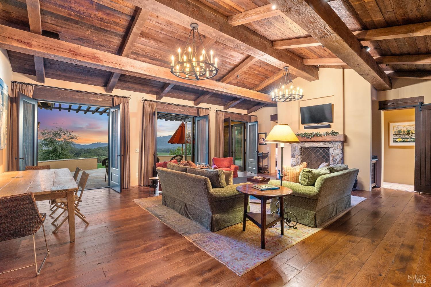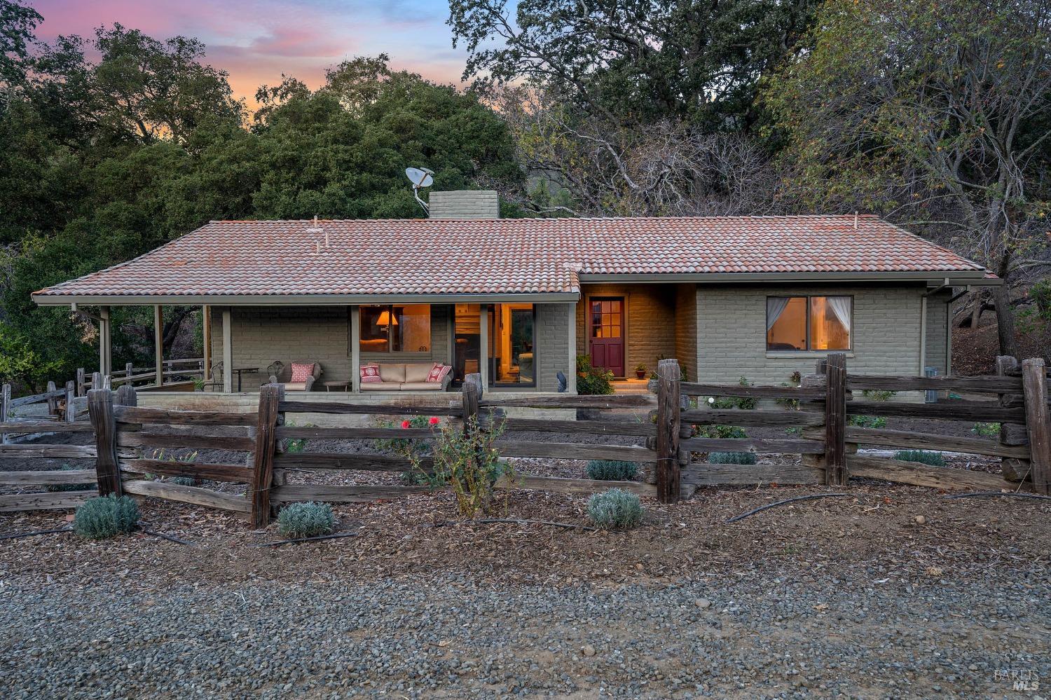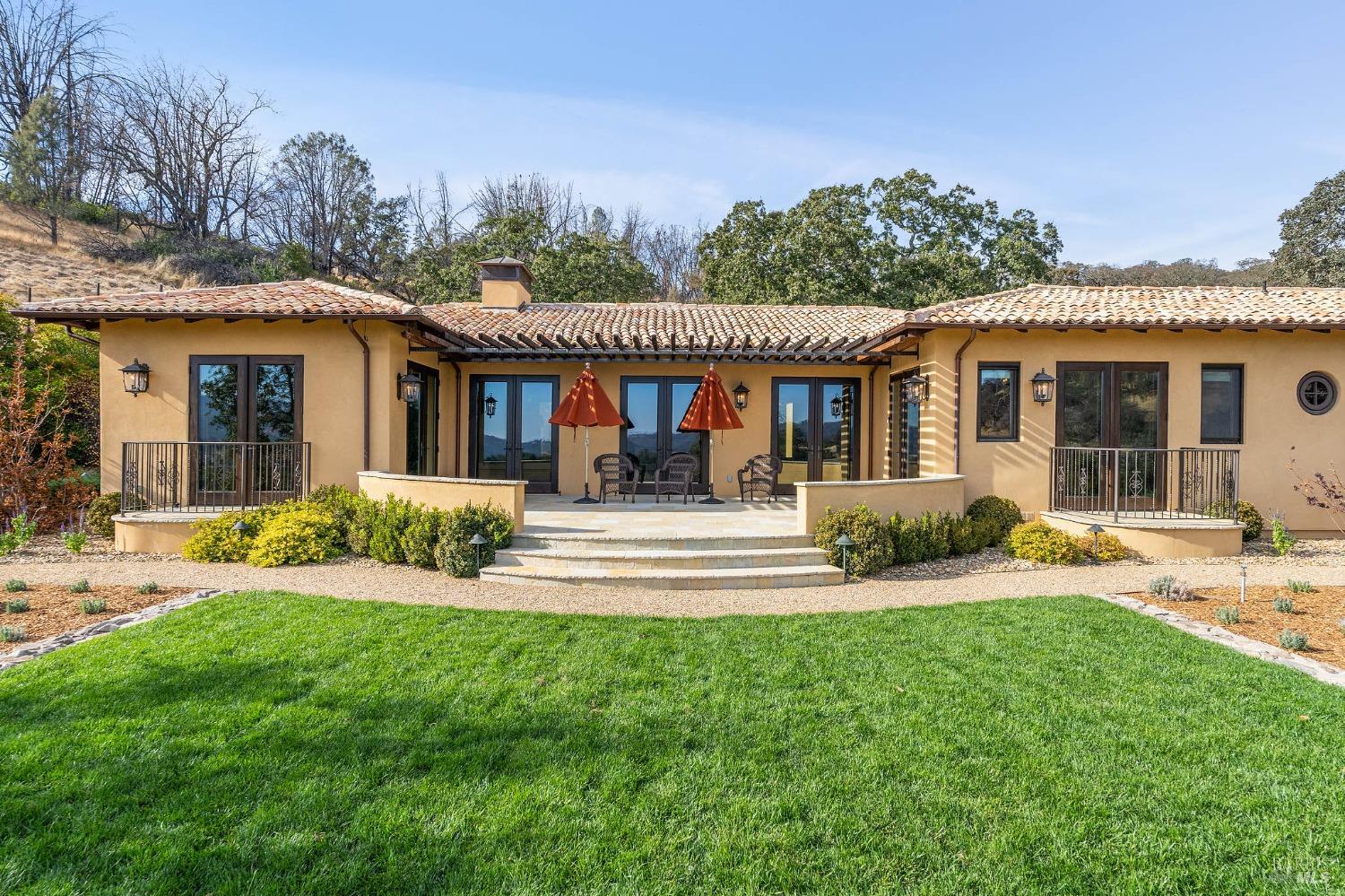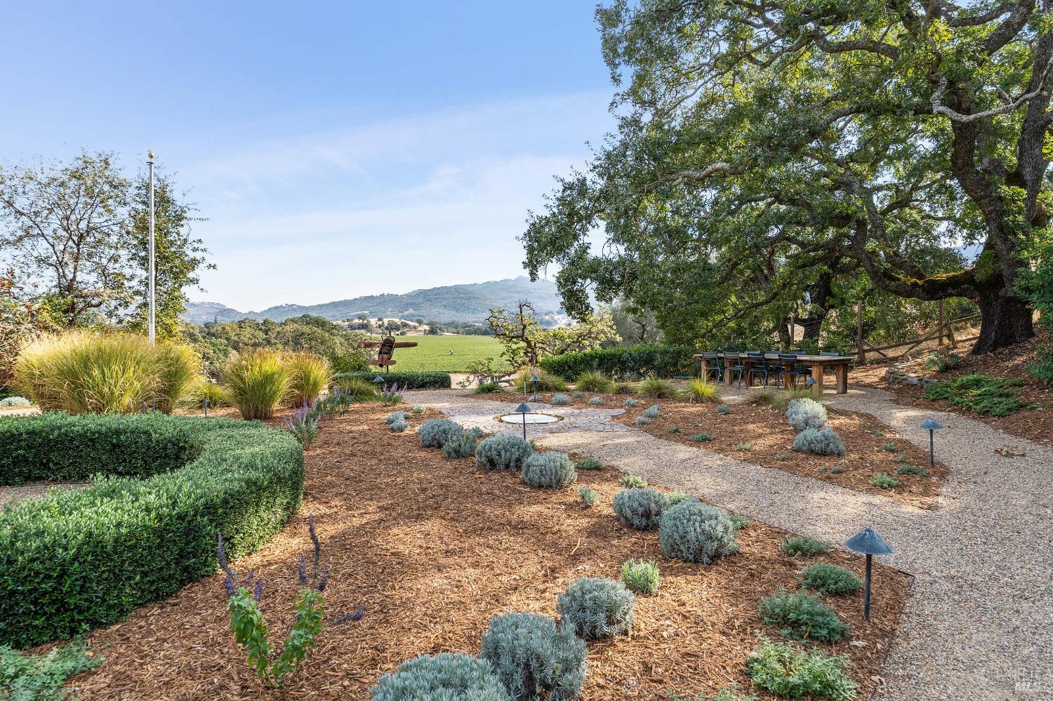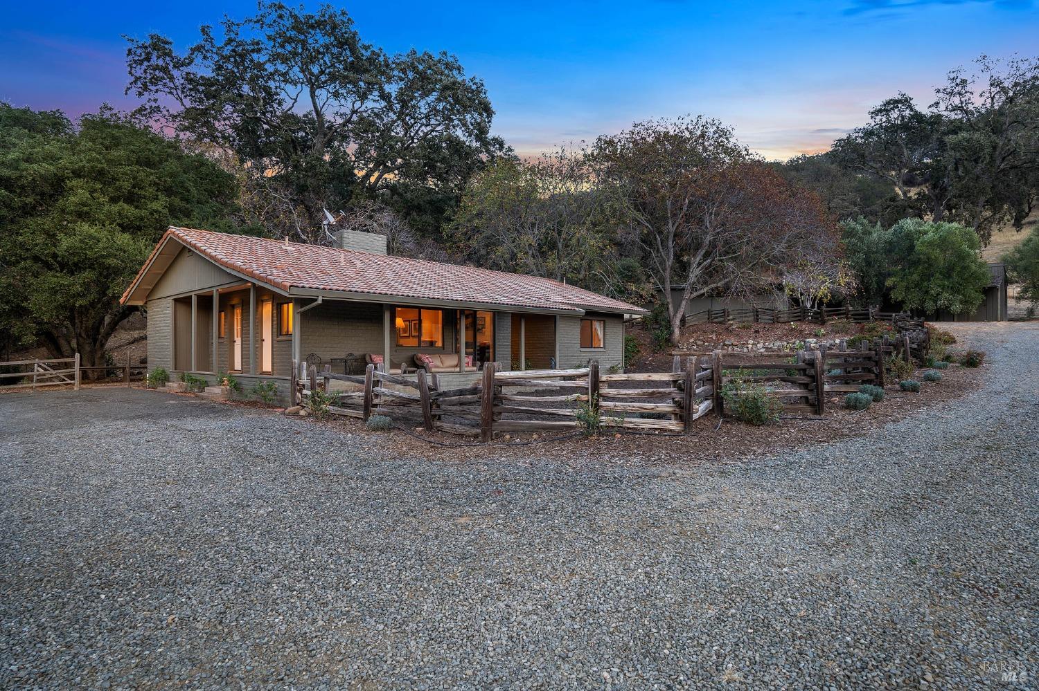 This 62 acre property has room for vineyards, horses, and livestock and offers a Napa lifestyle like no other. A lovely road takes you past your own ranch house, horse facilities, pickleball court and more on the way up a gentle hill to a rustic and yet elegant home with fine finishes and spectacular to-the-horizon southern panoramic views. The grounds surrounding the home were designed by award winning landscape architect, Steve Arns. Days would be spent on the patio or private balcony with a cup of coffee or glass of wine, looking at the lush green land below. The perfect place to gather with family or friends with 4 bedrooms in the main house on the hill and 3 bedrooms in the ranch house. A weekend escape for lots of outdoor fun, convenient to the Bay and the town of Napa.