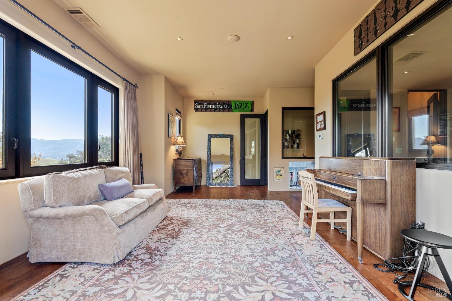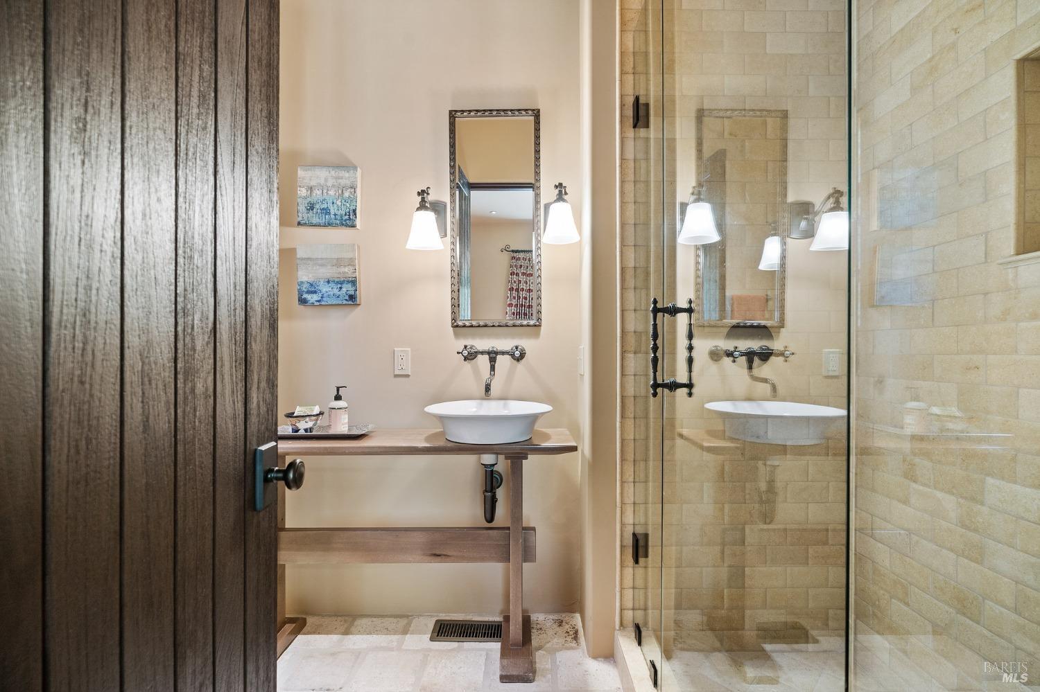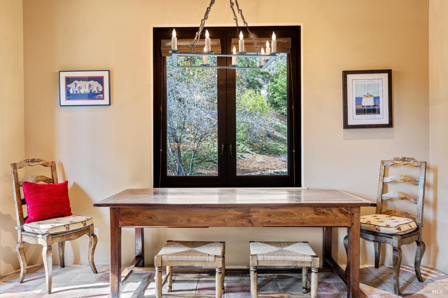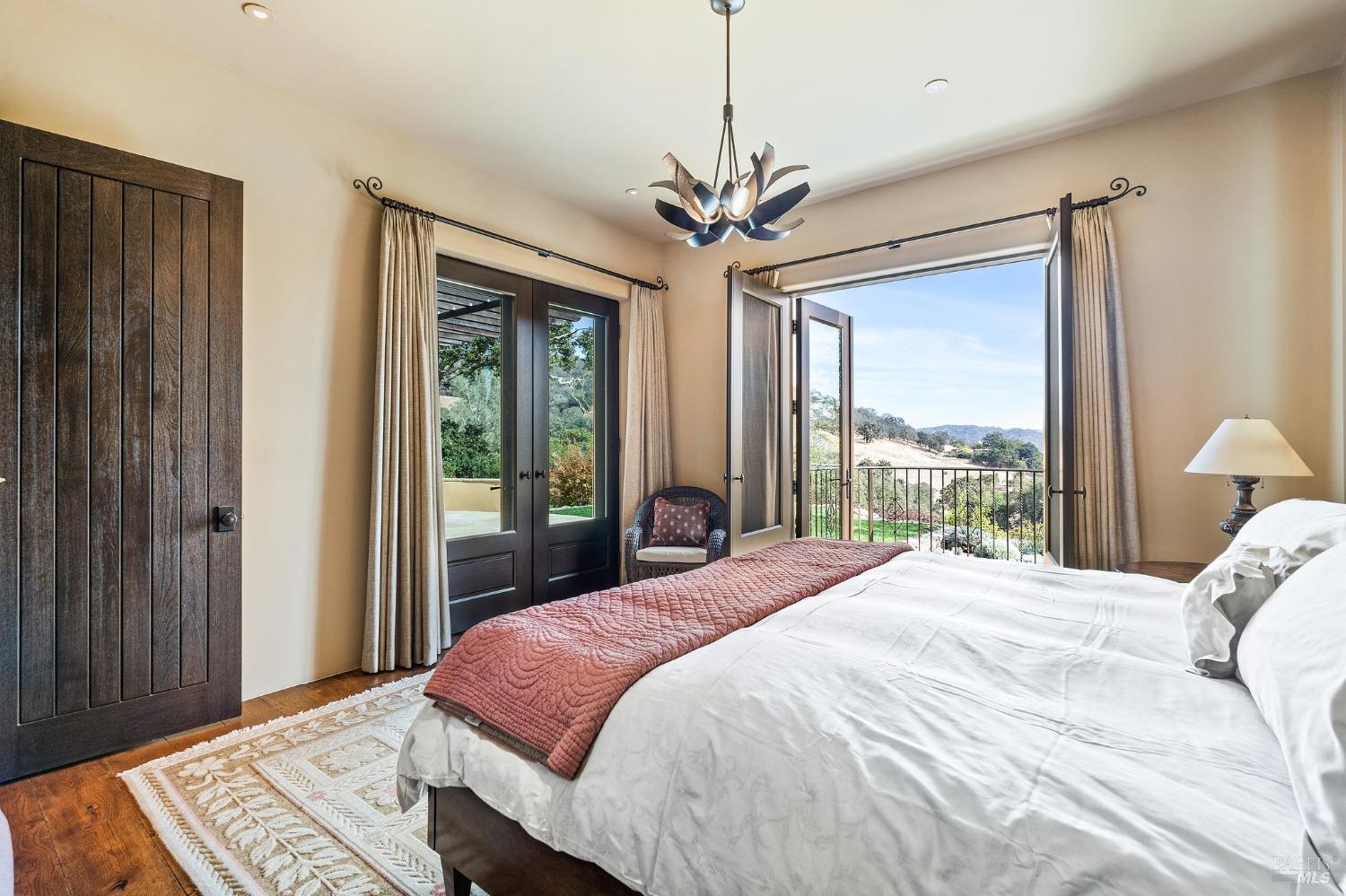 This 62 acre property has room for vineyards, horses, and livestock and offers a Napa lifestyle like no other. A lovely road takes you past your own ranch house, horse facilities, pickleball court and more on the way up a gentle hill to a rustic and yet elegant home with fine finishes and spectacular to-the-horizon southern panoramic views. The grounds surrounding the home were designed by award winning landscape architect, Steve Arns. Days would be spent on the patio or private balcony with a cup of coffee or glass of wine, looking at the lush green land below. The perfect place to gather with family or friends with 4 bedrooms in the main house on the hill and 3 bedrooms in the ranch house. A weekend escape for lots of outdoor fun, convenient to the Bay and the town of Napa.