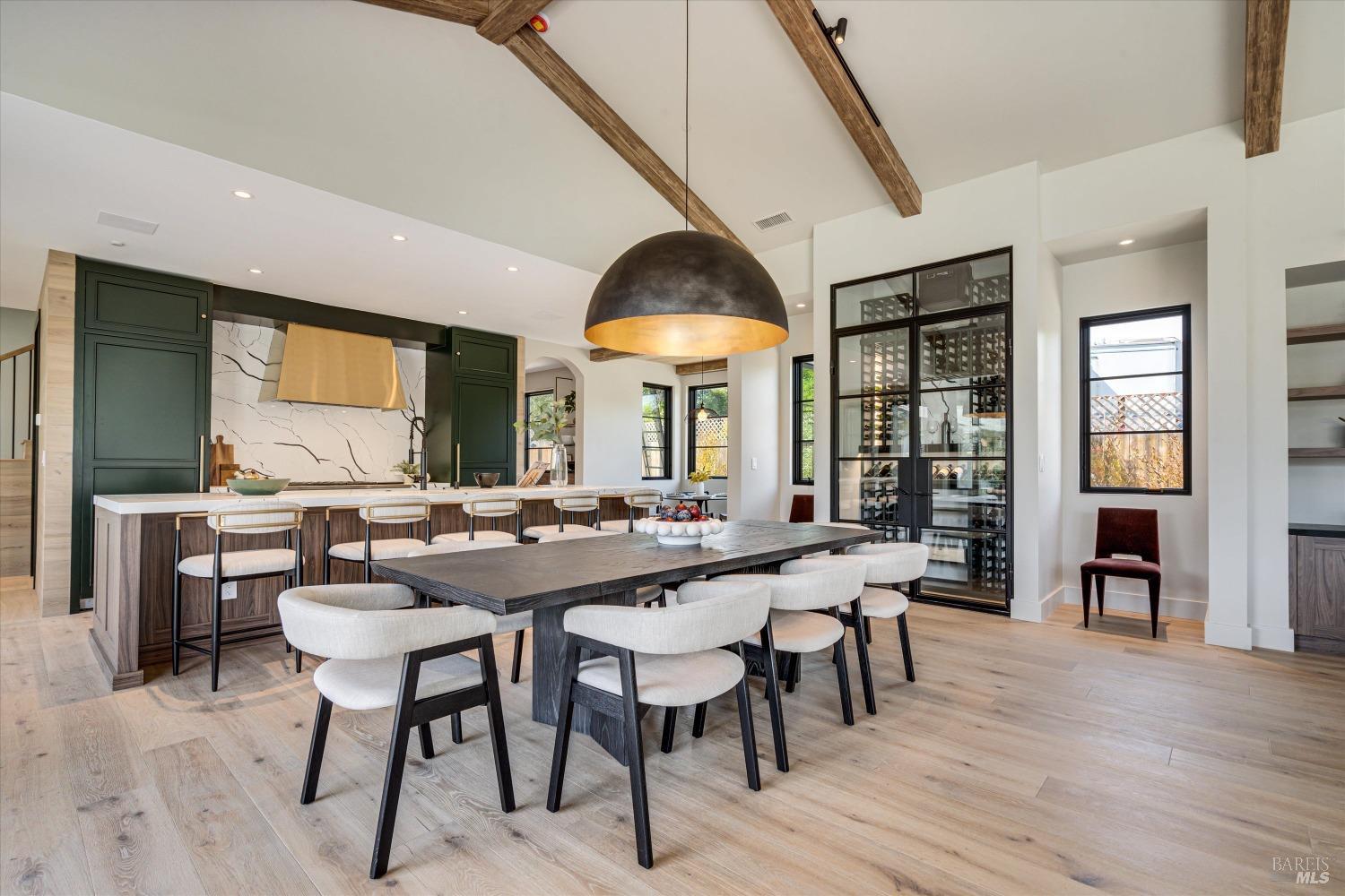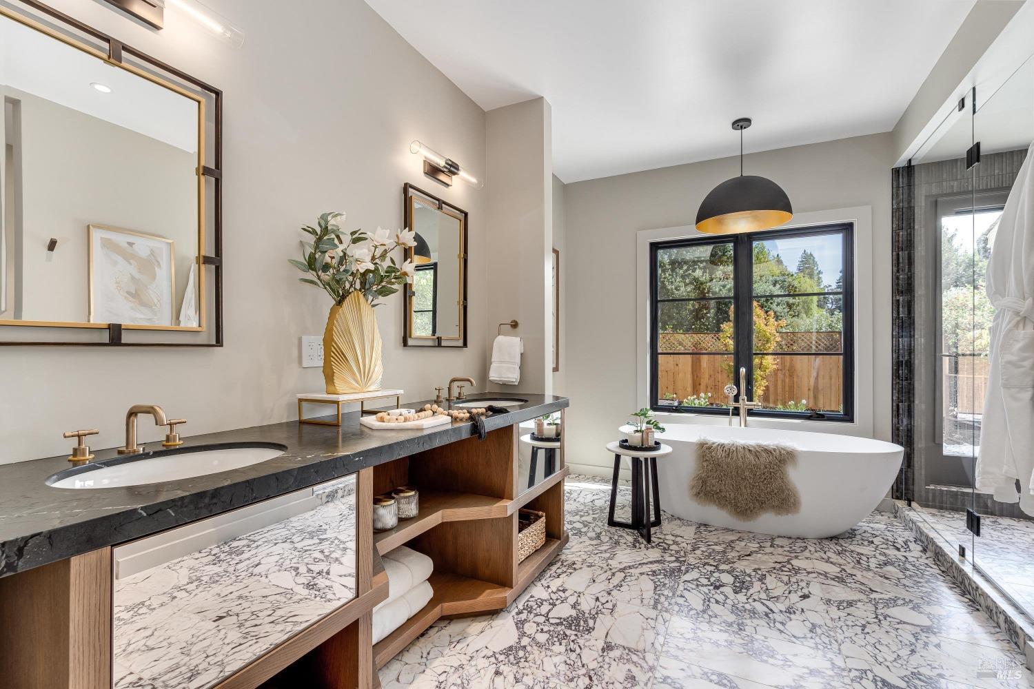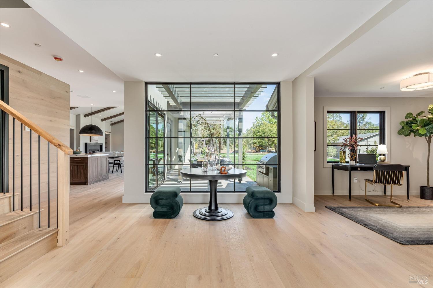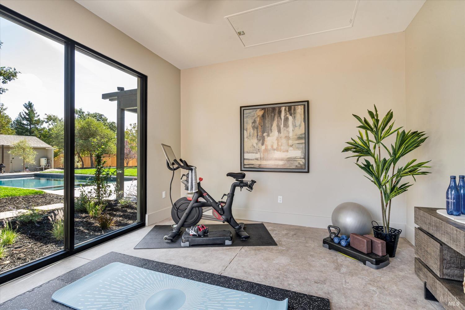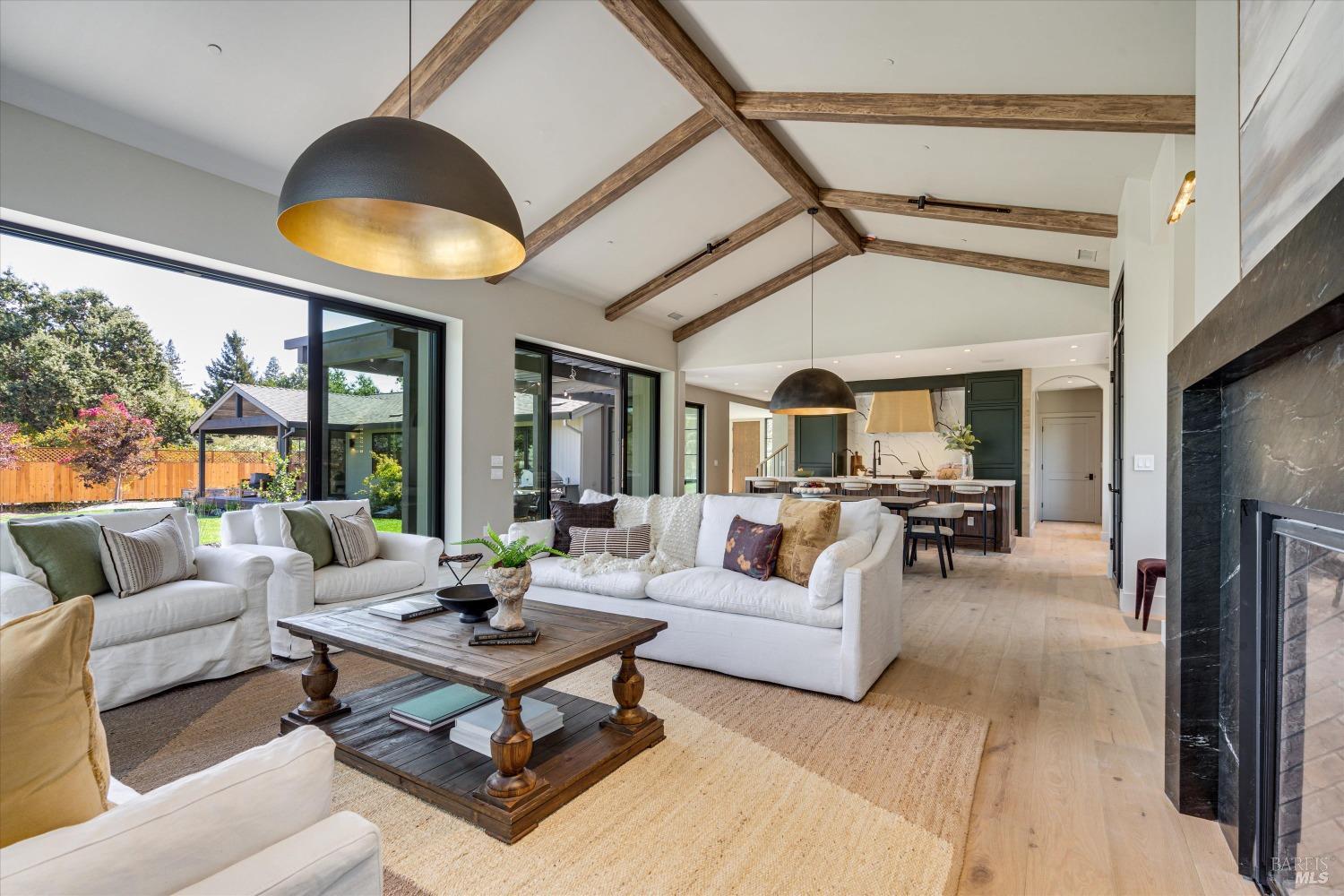 Modern Luxury in Napa's Wine Country Located at 1574 McKinley Rd, this 4-bedroom, 4.5-bathroom home offers modern comfort and tranquility just minutes from downtown Napa. The main level includes a spacious primary suite with a walk-in closet, heated marble floors, and a soaking tub, plus two additional bedrooms with en-suite bathrooms. Upstairs features a family/media room and a fourth en-suite bedroom. The open-concept living area is perfect for entertaining with a gas fireplace and 230-bottle wine cellar. The gourmet kitchen includes a 48" range with griddle, custom brass range hood, and a butler's pantry. The expansive acre-plus outdoor space offers potential for a sports court, micro farm, or vines. It includes a one-car & two-car garage attached to the main house, plus a detached two-car garage workshop with rear driveway access. For relaxation, enjoy the heated pool with an 8-person spa and automated cover. A nearby pavilion features a full bathroom, exercise room, and outdoor kitchen with a 36" Artisan grill and beverage dispenser. The pavilion's bathroom includes a shower with direct pool access, providing convenience and comfort. This property is a blend of modern luxury and serene country living in the heart of Napa Valley.