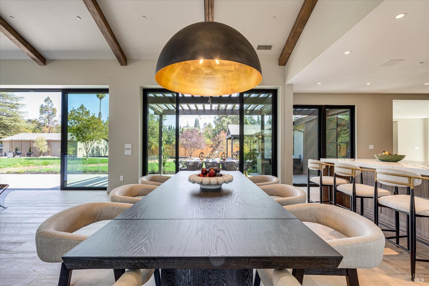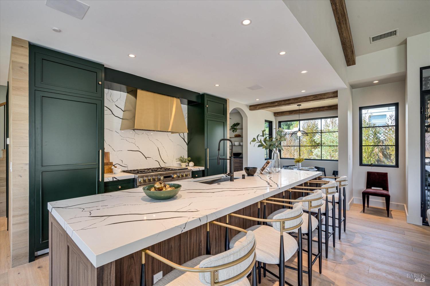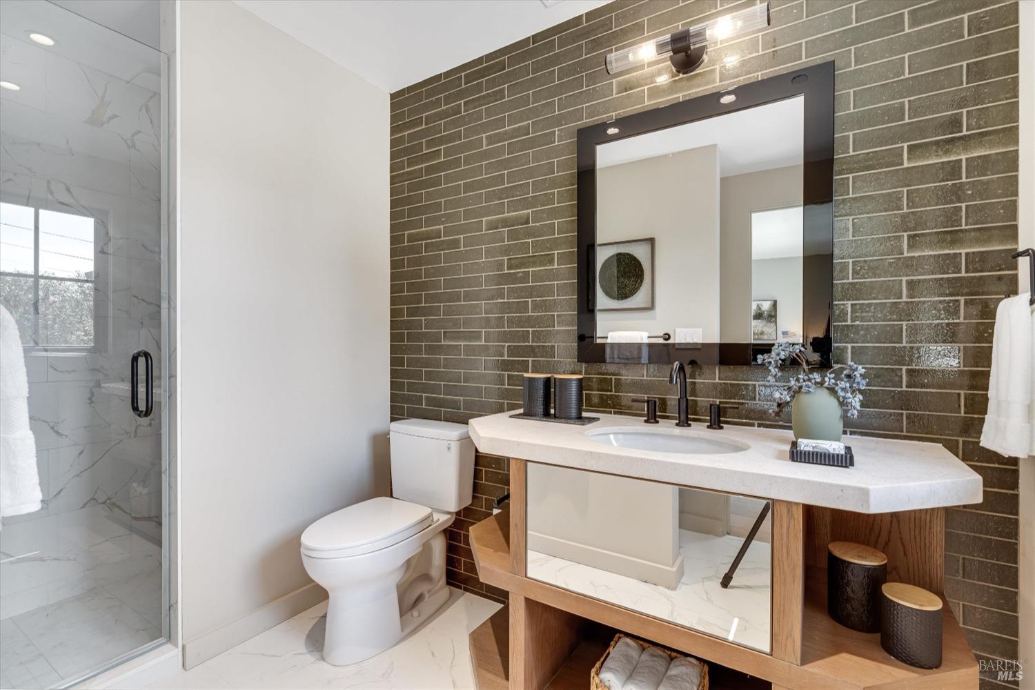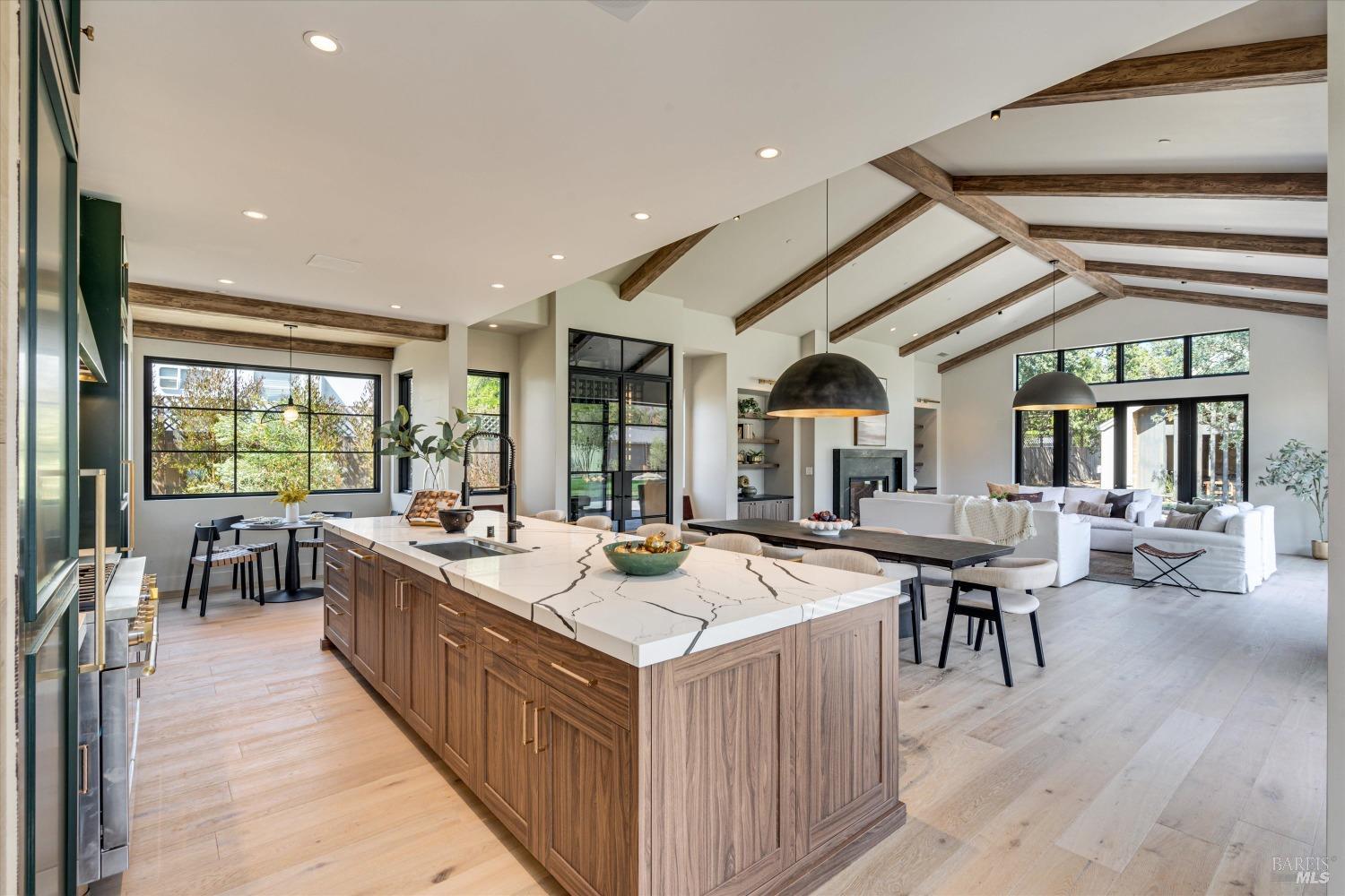 Modern Luxury in Napa's Wine Country Located at 1574 McKinley Rd, this 4-bedroom, 4.5-bathroom home offers modern comfort and tranquility just minutes from downtown Napa. The main level includes a spacious primary suite with a walk-in closet, heated marble floors, and a soaking tub, plus two additional bedrooms with en-suite bathrooms. Upstairs features a family/media room and a fourth en-suite bedroom. The open-concept living area is perfect for entertaining with a gas fireplace and 230-bottle wine cellar. The gourmet kitchen includes a 48" range with griddle, custom brass range hood, and a butler's pantry. The expansive acre-plus outdoor space offers potential for a sports court, micro farm, or vines. It includes a one-car & two-car garage attached to the main house, plus a detached two-car garage workshop with rear driveway access. For relaxation, enjoy the heated pool with an 8-person spa and automated cover. A nearby pavilion features a full bathroom, exercise room, and outdoor kitchen with a 36" Artisan grill and beverage dispenser. The pavilion's bathroom includes a shower with direct pool access, providing convenience and comfort. This property is a blend of modern luxury and serene country living in the heart of Napa Valley.