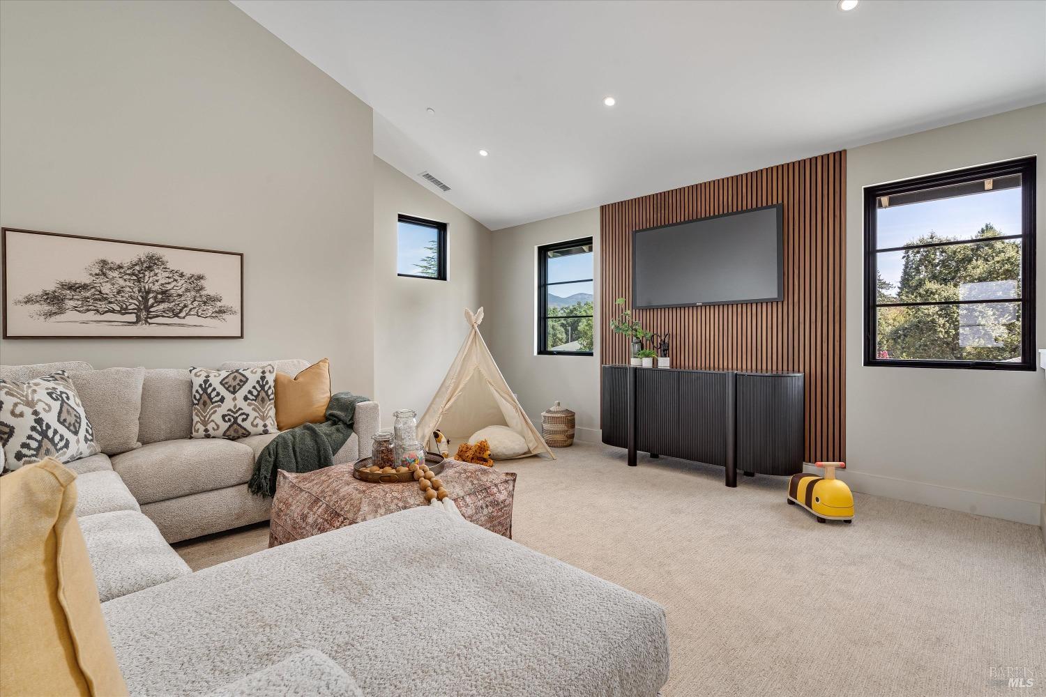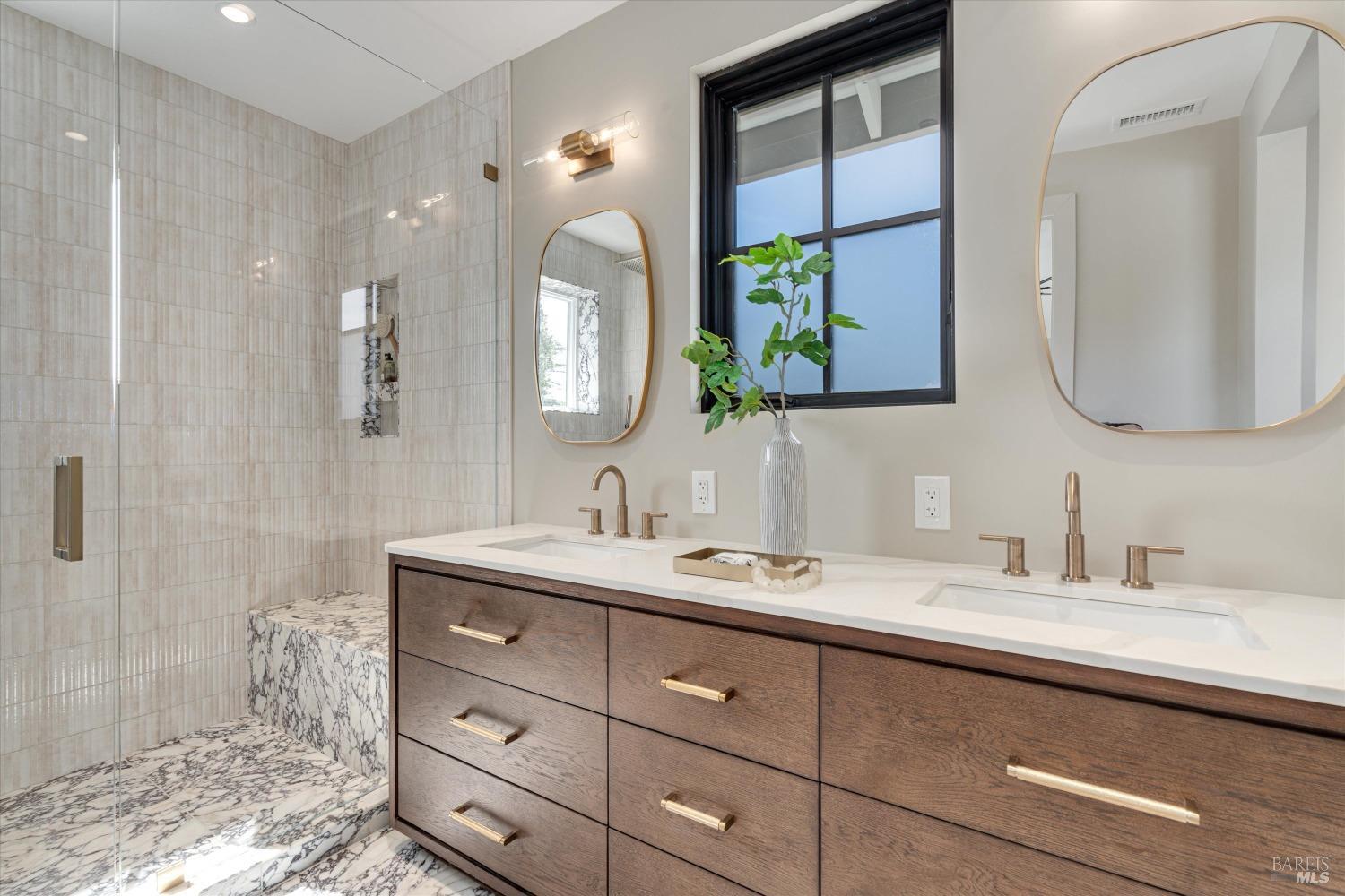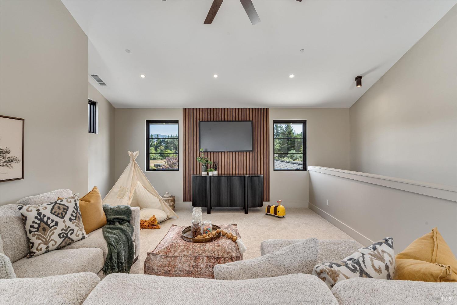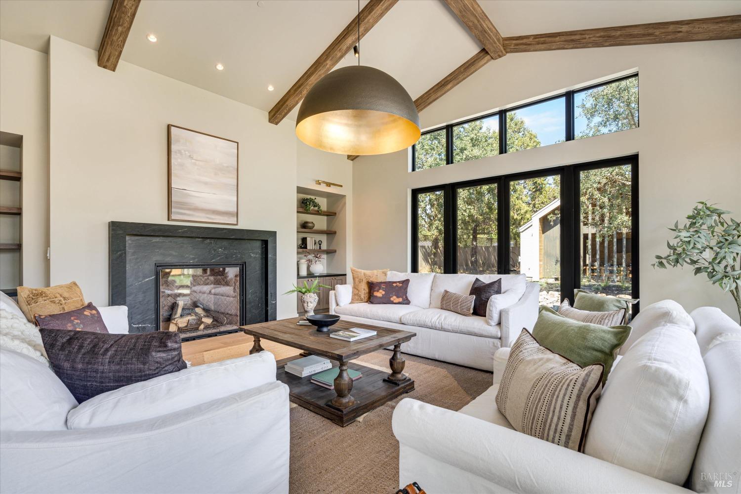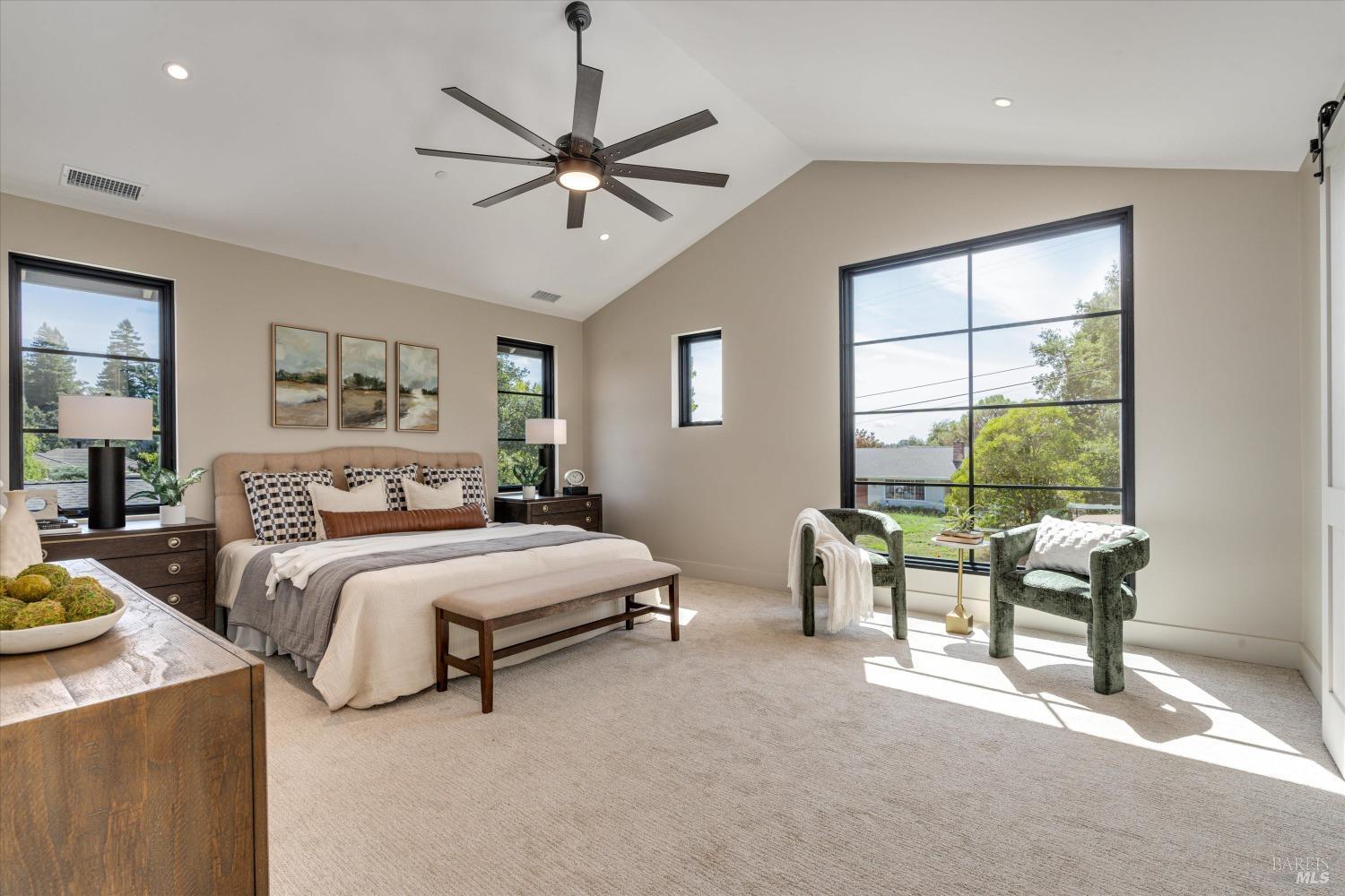 Modern Luxury in Napa's Wine Country Located at 1574 McKinley Rd, this 4-bedroom, 4.5-bathroom home offers modern comfort and tranquility just minutes from downtown Napa. The main level includes a spacious primary suite with a walk-in closet, heated marble floors, and a soaking tub, plus two additional bedrooms with en-suite bathrooms. Upstairs features a family/media room and a fourth en-suite bedroom. The open-concept living area is perfect for entertaining with a gas fireplace and 230-bottle wine cellar. The gourmet kitchen includes a 48" range with griddle, custom brass range hood, and a butler's pantry. The expansive acre-plus outdoor space offers potential for a sports court, micro farm, or vines. It includes a one-car & two-car garage attached to the main house, plus a detached two-car garage workshop with rear driveway access. For relaxation, enjoy the heated pool with an 8-person spa and automated cover. A nearby pavilion features a full bathroom, exercise room, and outdoor kitchen with a 36" Artisan grill and beverage dispenser. The pavilion's bathroom includes a shower with direct pool access, providing convenience and comfort. This property is a blend of modern luxury and serene country living in the heart of Napa Valley.