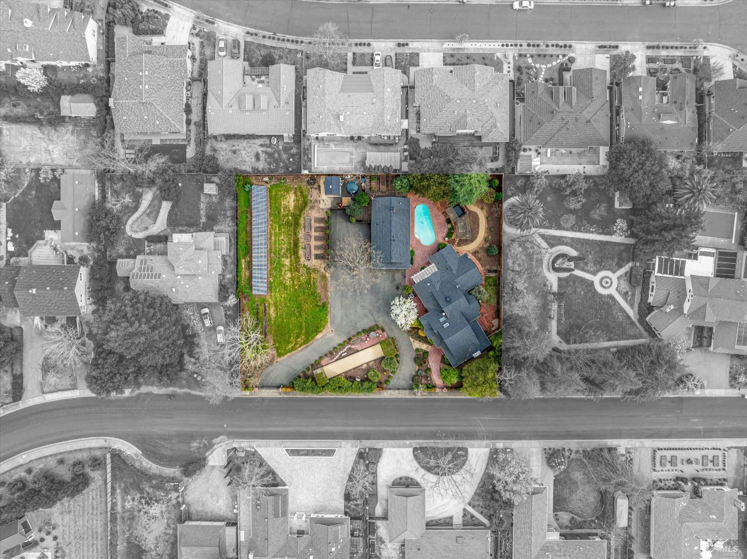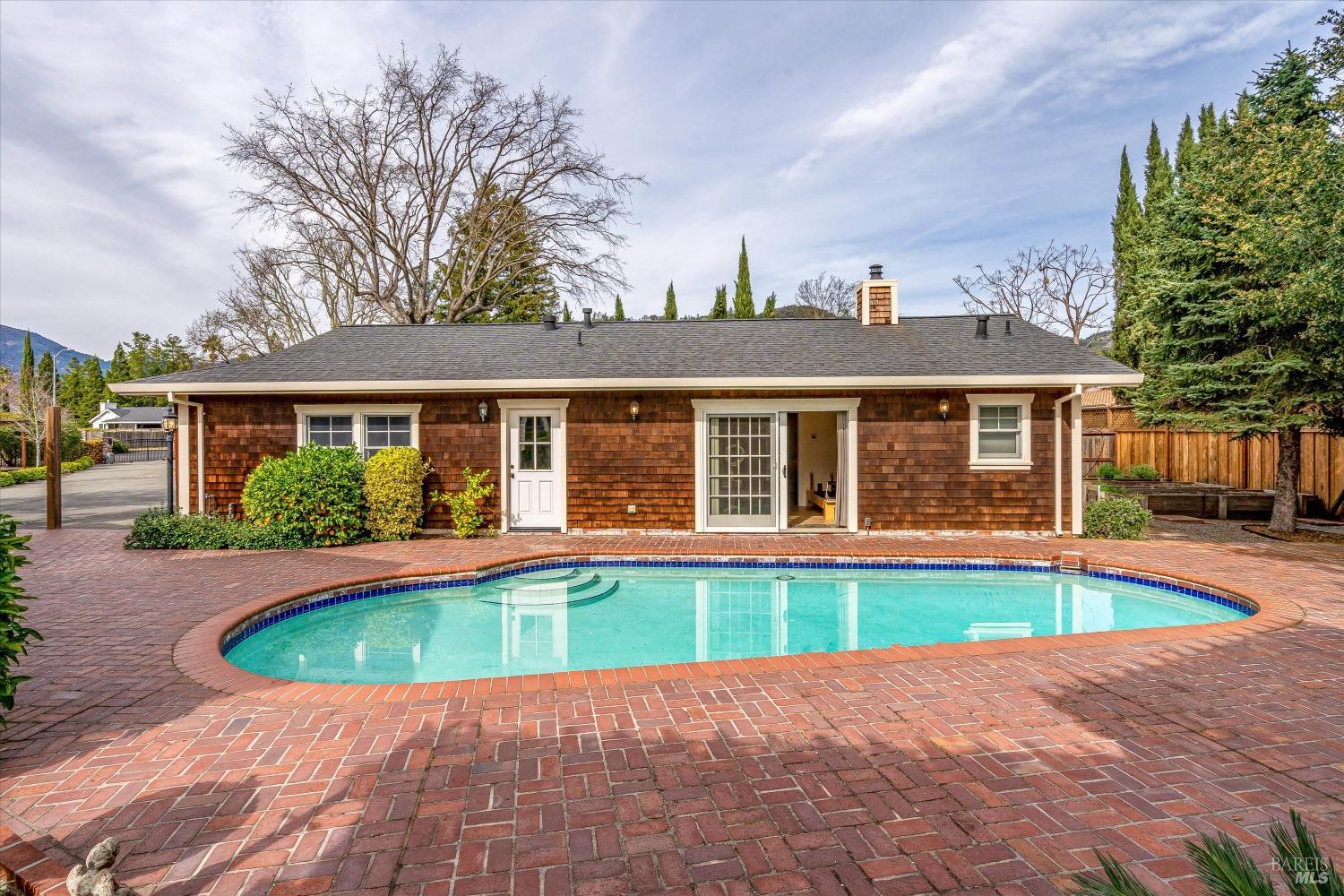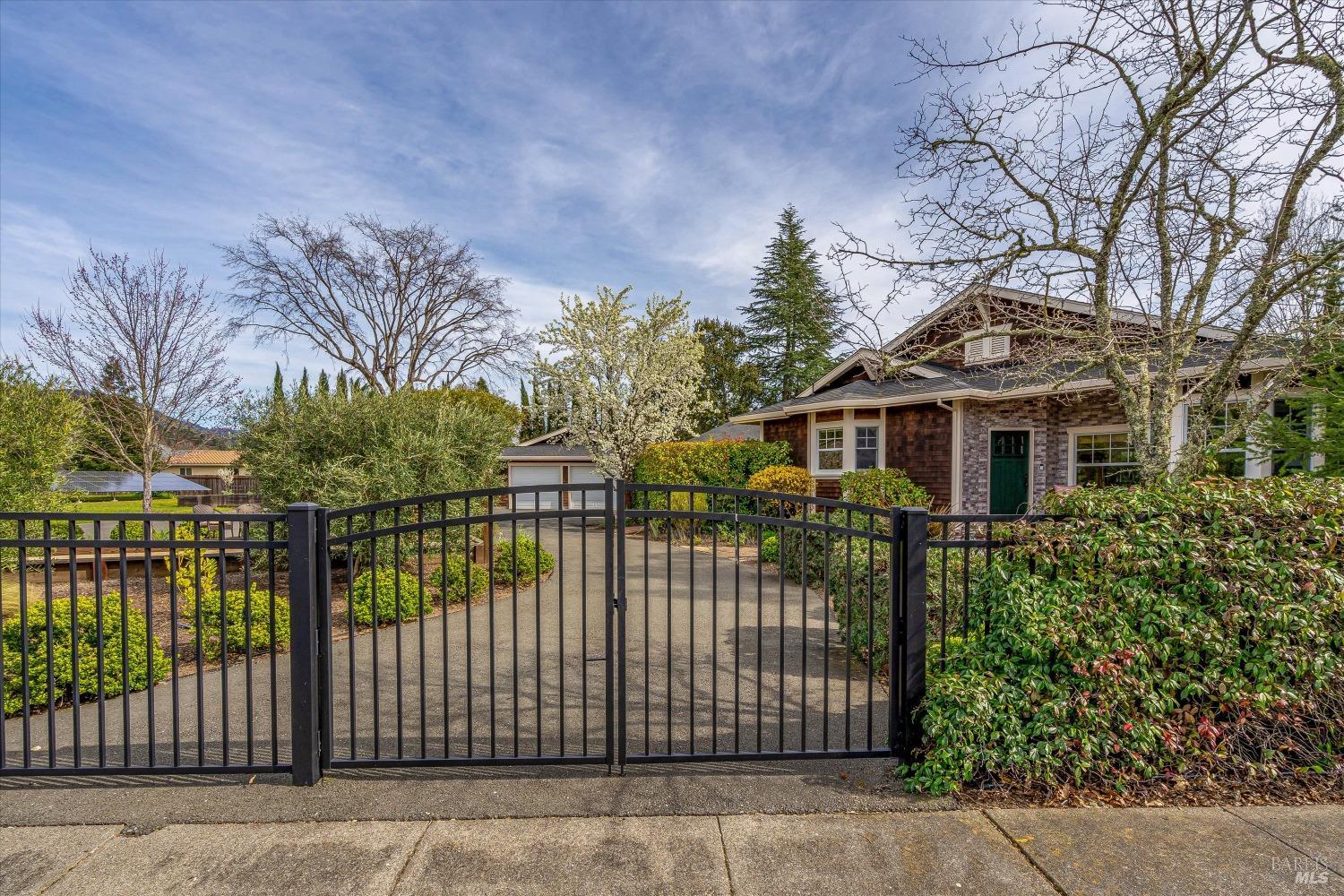 Gated Calistoga 3 bedroom 2 bath main residence with 1 bedroom 1 bath second unit/guest house. Heated pool, personal spa, city water and an irrigation well with 5000 gal holding tank. Main residence is approximately 2440 sq ft with 540 sq ft second unit/guest house. RV/boat parking with clean out is along side the detached two car 655 sq.foot garage. Garage features a large storage attic and a 800 bottle temperature controlled wine cellar. 64 panel ground mounted photovoltaic solar system and 20 KW generator. Numerous olive and fruit trees, raised planter and garden beds. Second legal parcel APN #011-032-008-000 included in sale is 0.3581 making the combined lot sizes 0.7147 of an acre or approximately 31,131 sq. ft.