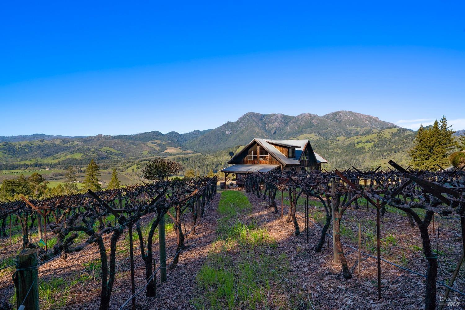 Nestled in Sonoma County's prestigious Knights Valley AVA, Pelkan Ranch spans 66.7 acres just six miles from downtown Calistoga. Acquired by John and Carolyn Pelkan in 1985, the estate features 21.31 acres of meticulously planted vineyards known for world-class viticulture. Set against Mount St. Helena, it shares a prized ridgeline with Peter Michael Estate Vineyard. At elevations up to 950 feet, vines thrive in iron-rich volcanic soils, producing bold, expressive fruit. Pelkan Ranch grapes appear in acclaimed wines from Chiron, Keplinger, Carlisle, and Trinitas, offering intense red berry, bramble, plum, leather, graphite, and mineral notes. The property includes a charming guest or manager's home and a flat building pad with extraordinarily expansive views. Surrounded by boutique wineries, rolling vineyards, and rural estates, Pelkan Ranch is a rare opportunity for vintners or collectors to own a piece of California wine country heritage.