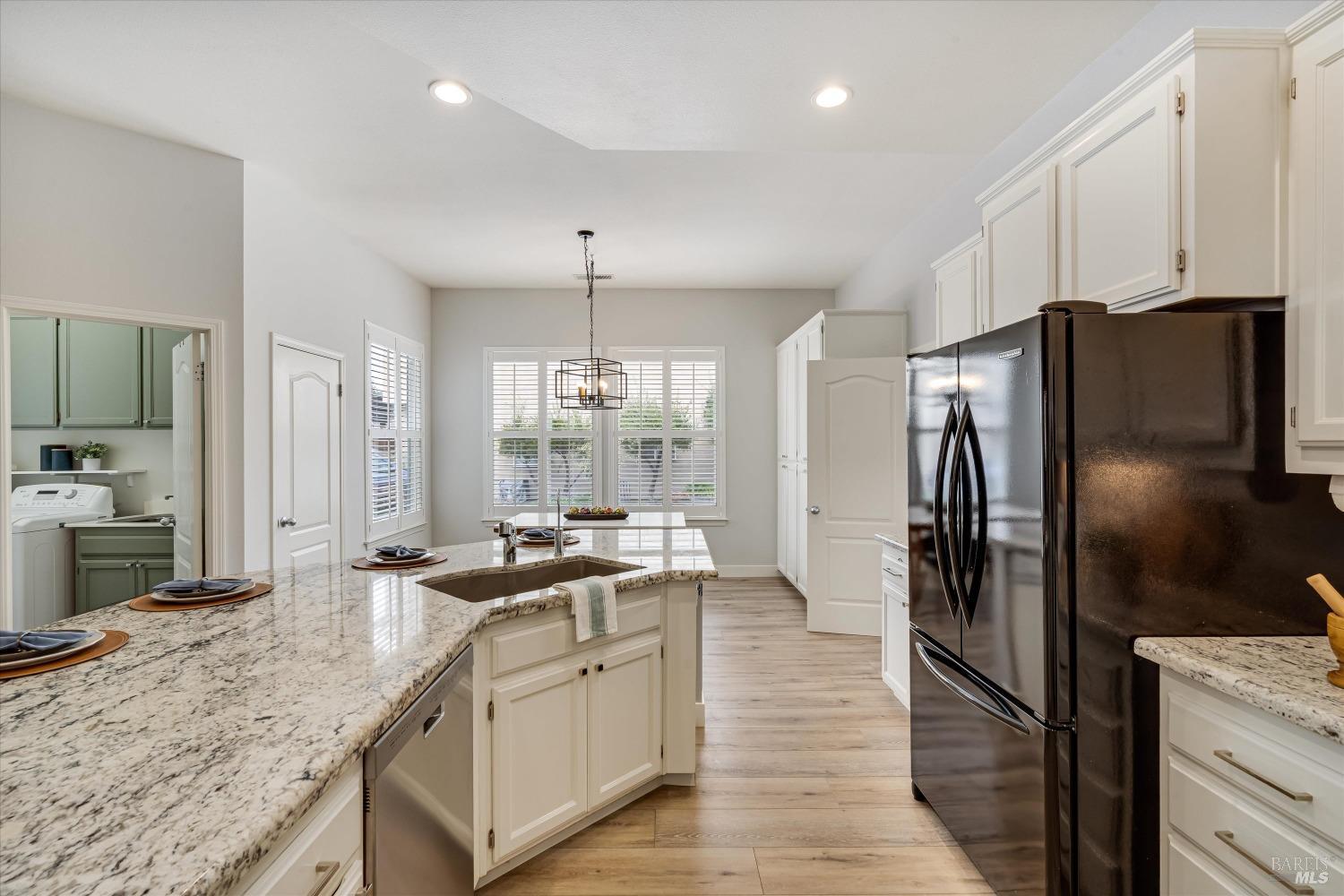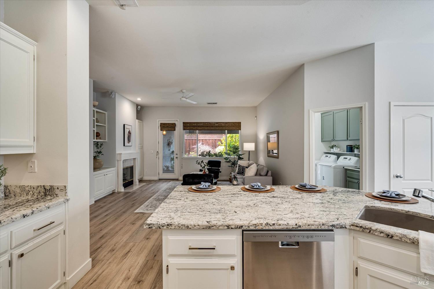 This just might be the best priced, move-in condition home in St. Helena today! Beautifully maintained and upgraded 3 bedroom 2 bath, single level Signorelli home with detached 2 car garage. This beauty shows like a model home. Great room with fireplace, large kitchen island with sink, granite counters, and a breakfast nook...and yes, there is a formal dining room. Primary suite with garden access features a spacious bathroom with granite counters, dual sinks, and walk-in closet. Enjoy the privacy fenced backyard with raised garden beds, potting shed, and pergola shaded patios. This is the developer's "Trebbiano" model with the den option, in which the owner has installed a Murphy Bed unit with closet/dresser drawers providing guest/bedroom or den/office flexibility.
